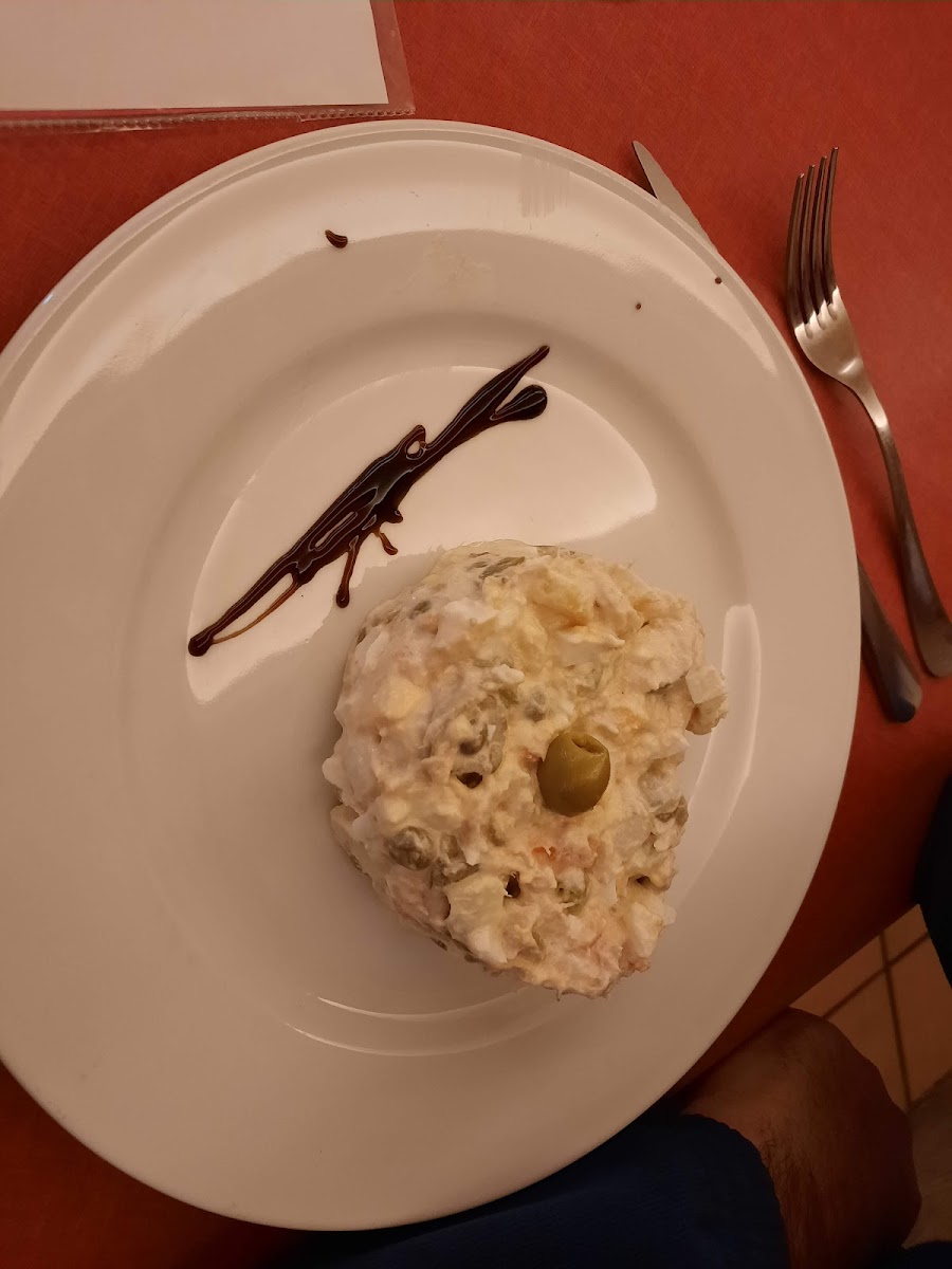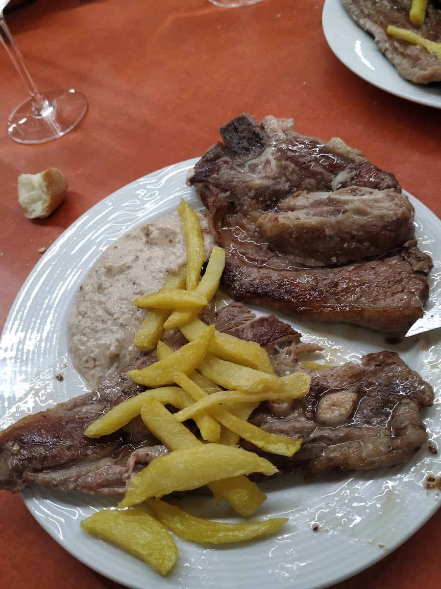 The interior is modest but comfortable, featuring a sizable dining room that can fill up quickly—especially around lunchtime when the menú del día draws a steady crowd. Diners often appreciate the value here: generous portions of familiar Spanish bar and grill fare, with some standout dishes like the Secreto de Cerdo con Salsa de Boletus and Costilla de Ternera frequently recommended by staff and patrons alike. The menu balances traditional staples like tortilla de patata and Russian salad with some seafood options and tempting desserts, such as the lime mousse tart.