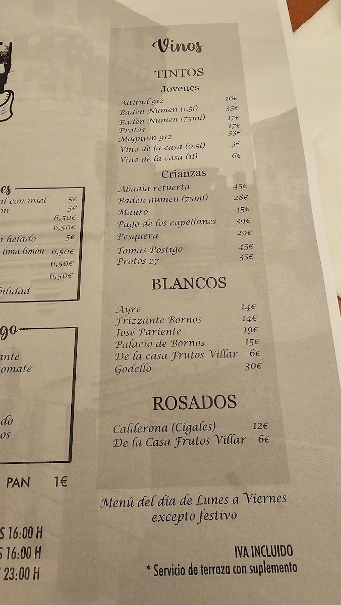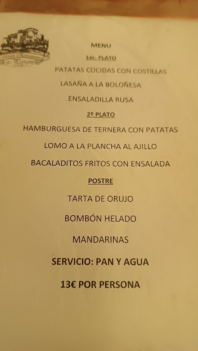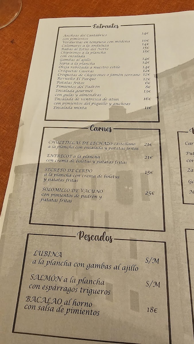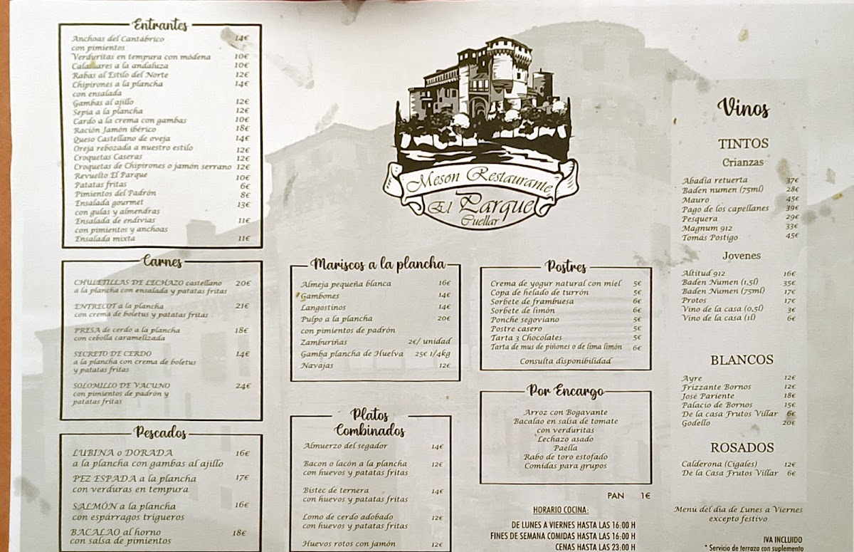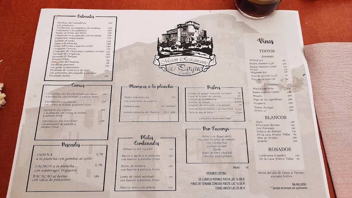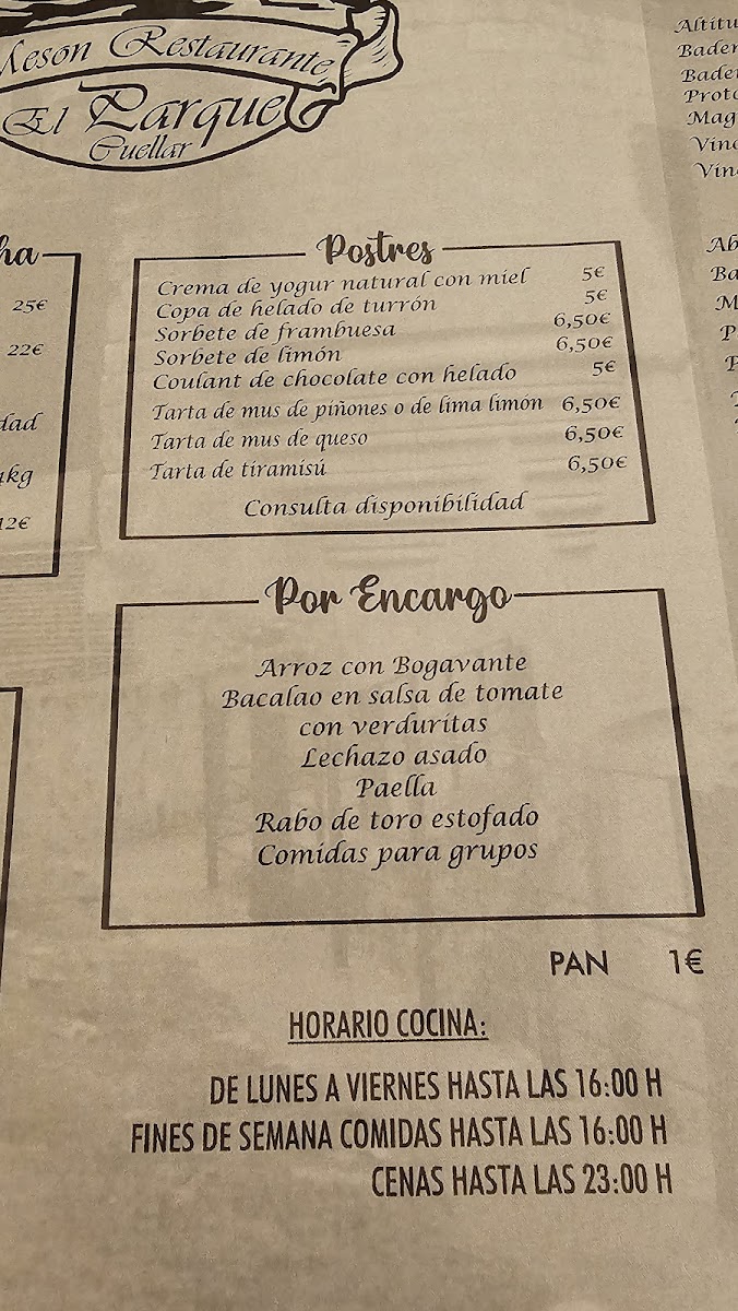 Restaurante El Parque Menu